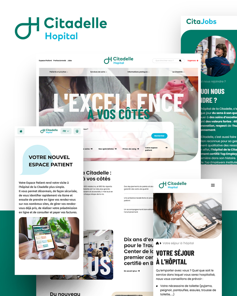 Le site intègre également un portail destiné aux professionnels de la santé externes (avec, entre autres, des contacts directs vers les spécialistes) ainsi qu’un espace recrutement dédié, conçu pour mieux présenter la diversité des métiers, les offres d’emploi et l’esprit Cita.